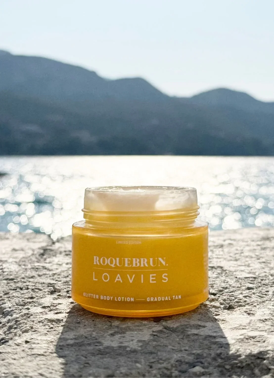 De Roquebrun Glitter Gradual Tan X Loavies Body Lotion zorgt niet alleen voor een diep gehydrateerde en zijdezachte huid, maar geeft je ook een natuurlijke bruine gloed die tot wel 7 dagen blijft zitten.